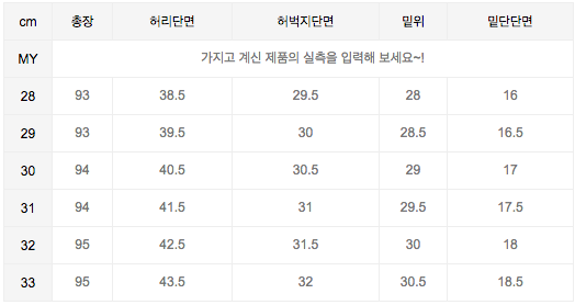 평소 허리 29를 입는 편인데 , 이건 -1해야 될정도로 허벅지가 크게나왔습니다.