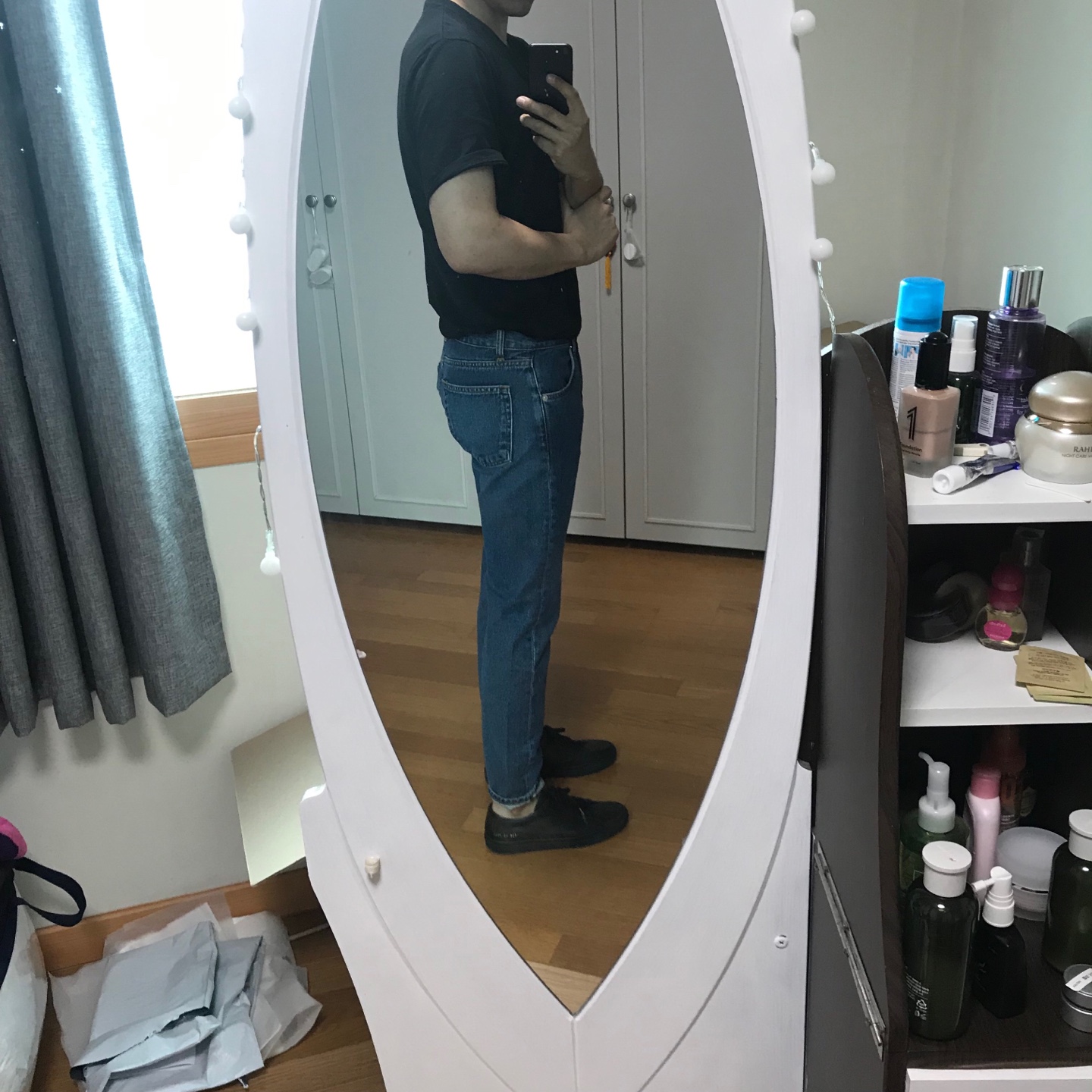 중요한점은 다른 청바지들 대비 허벅지 실측이 특히나 크다는 건데요,