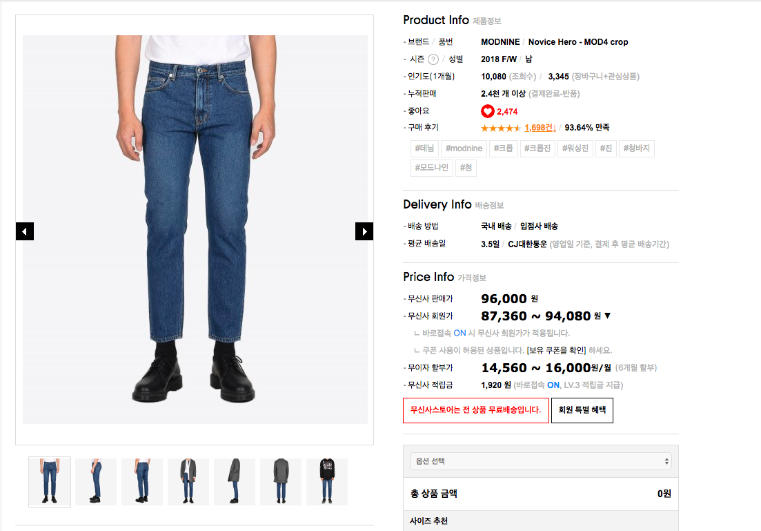 모드나인 MOD4 노비스히어로 ) 허벅지가 두꺼운 분이라면 이 청바지를 추천드립니다!
